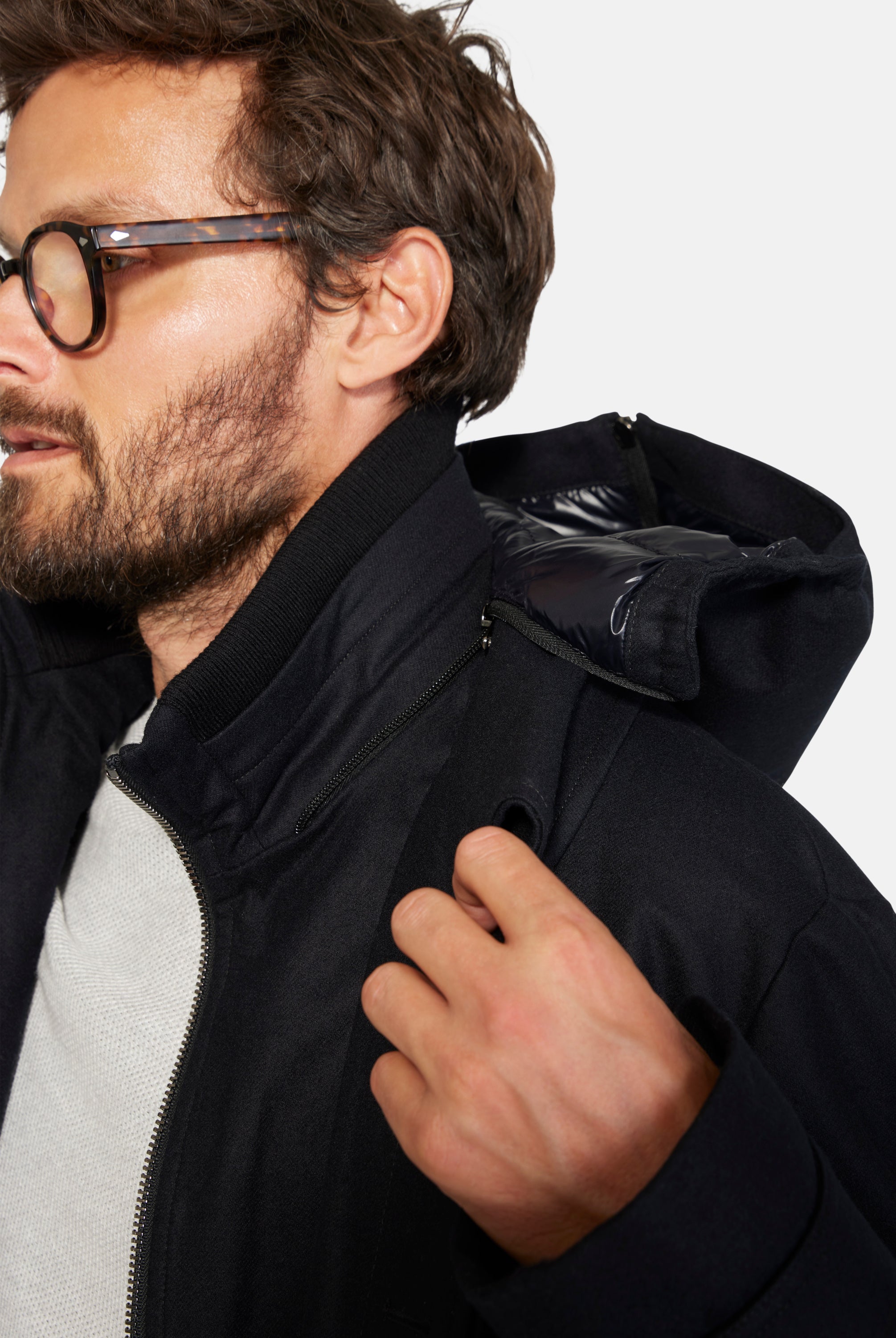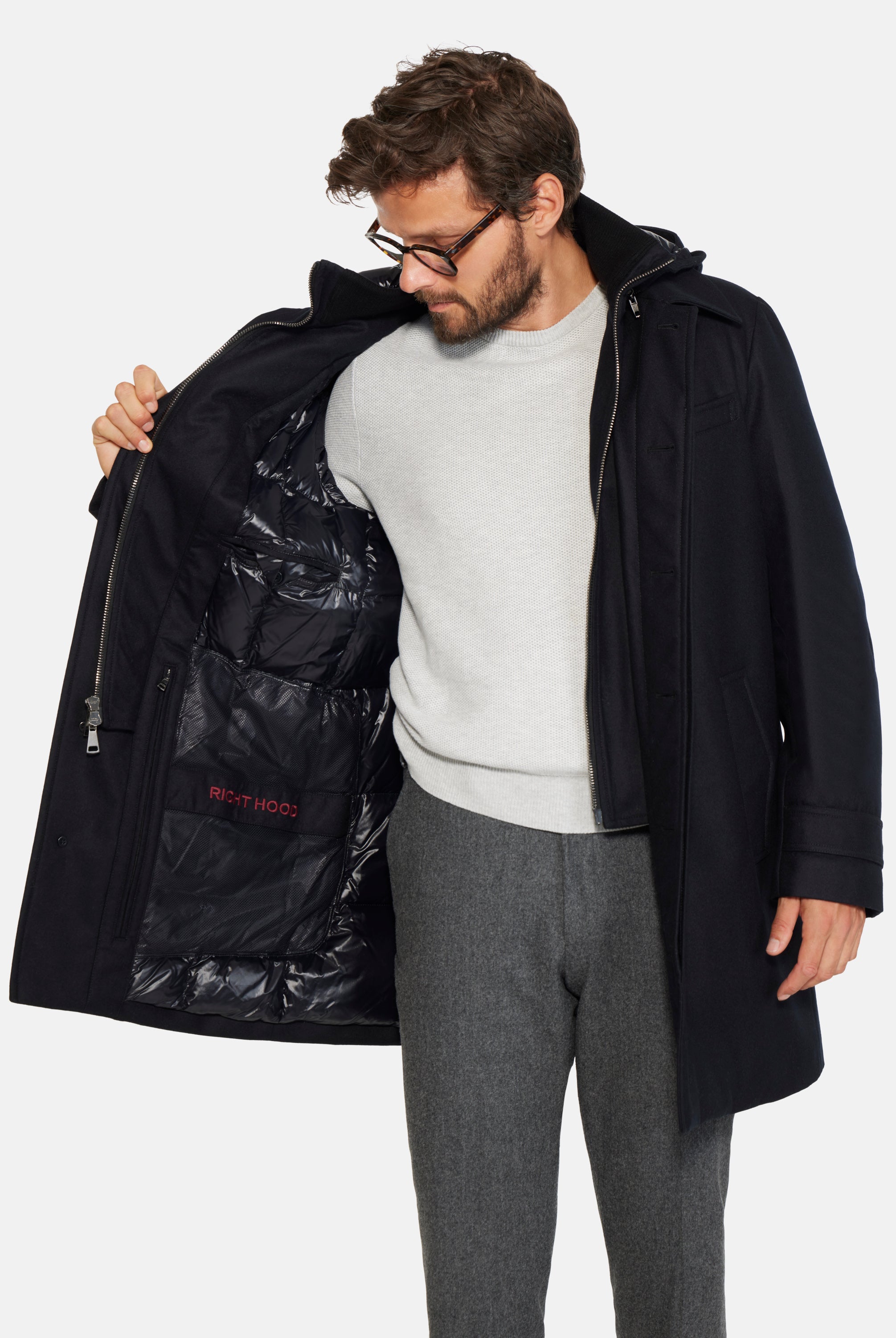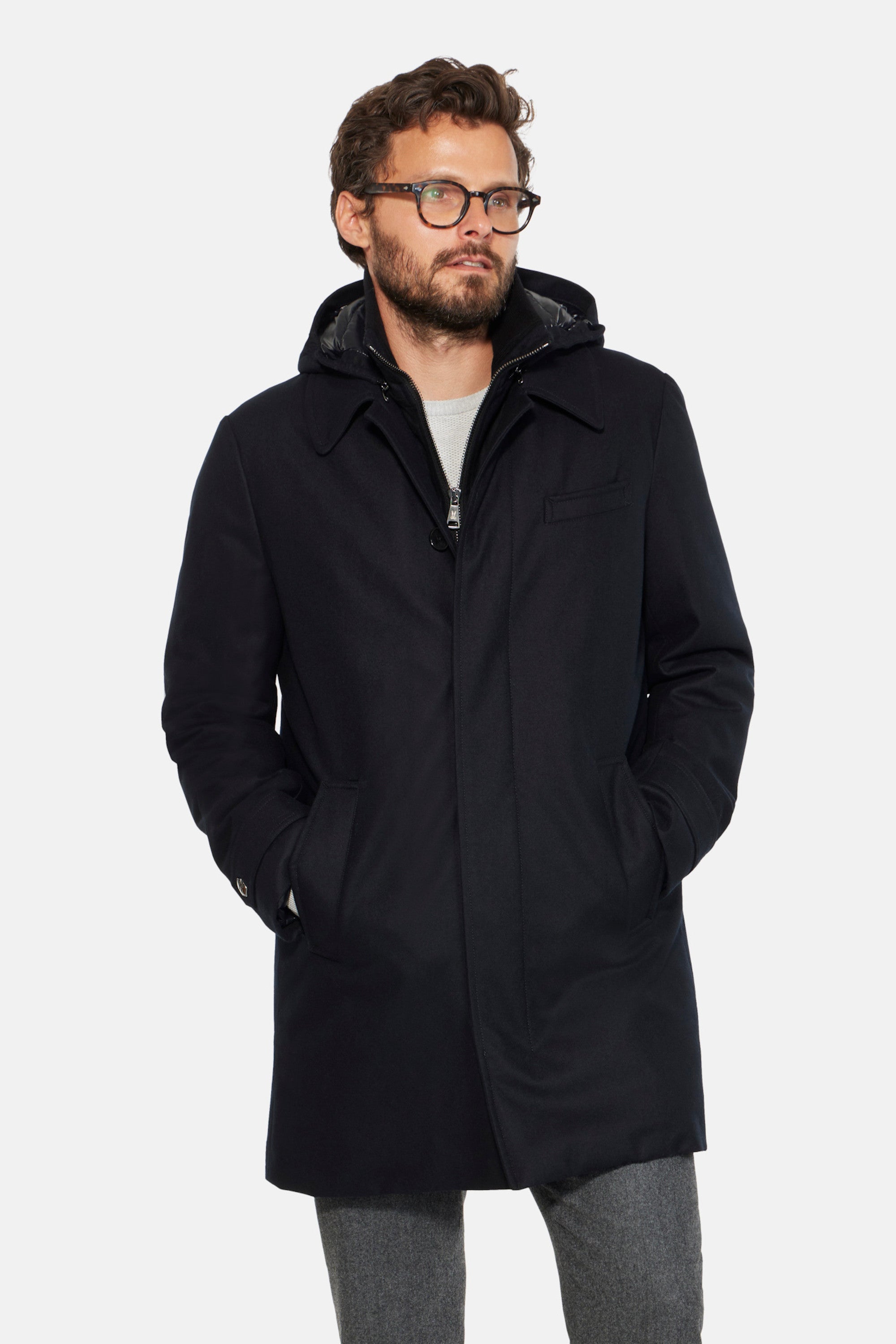 Warm waterproof hooded overcoat with removable hood. Designed to be very light-on-the-body but with high performance protection. This insulated topcoat can be worn casually or as a formal coat. Packed with extra cold, wet, snow, rain, winter weather features.