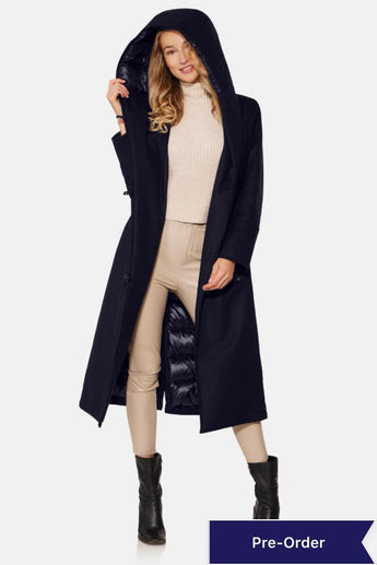 - Exterior: super soft wool cashmere blend - Waterproof & windproof membrane - Interior: authentic down fill (double sacked inner quilting to prevent feather leakage) - Extra deep, cozy, lined hand pockets - Closure at neck for extra protection - Down lined wrap-around hood - Tailorable sleeves - Pill-proof protected fabric - Made in Italy